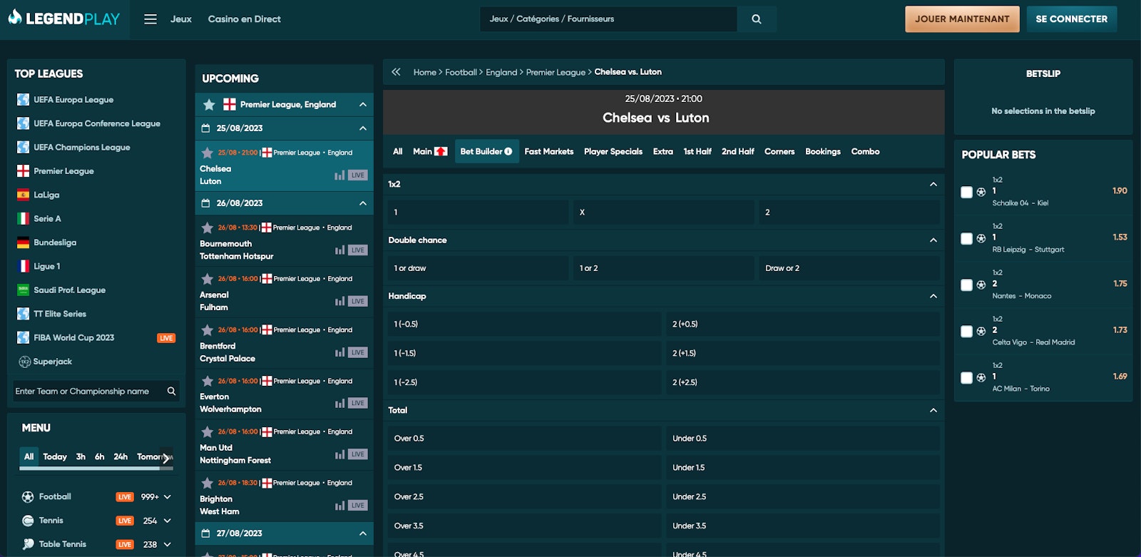 LegendPlay offre une variété de types de paris, notamment les paris simples, les paris combinés et les paris en direct. Vous pouvez parier sur des sports populaires tels que le football, le tennis, le basketball, le hockey et bien d'autres.